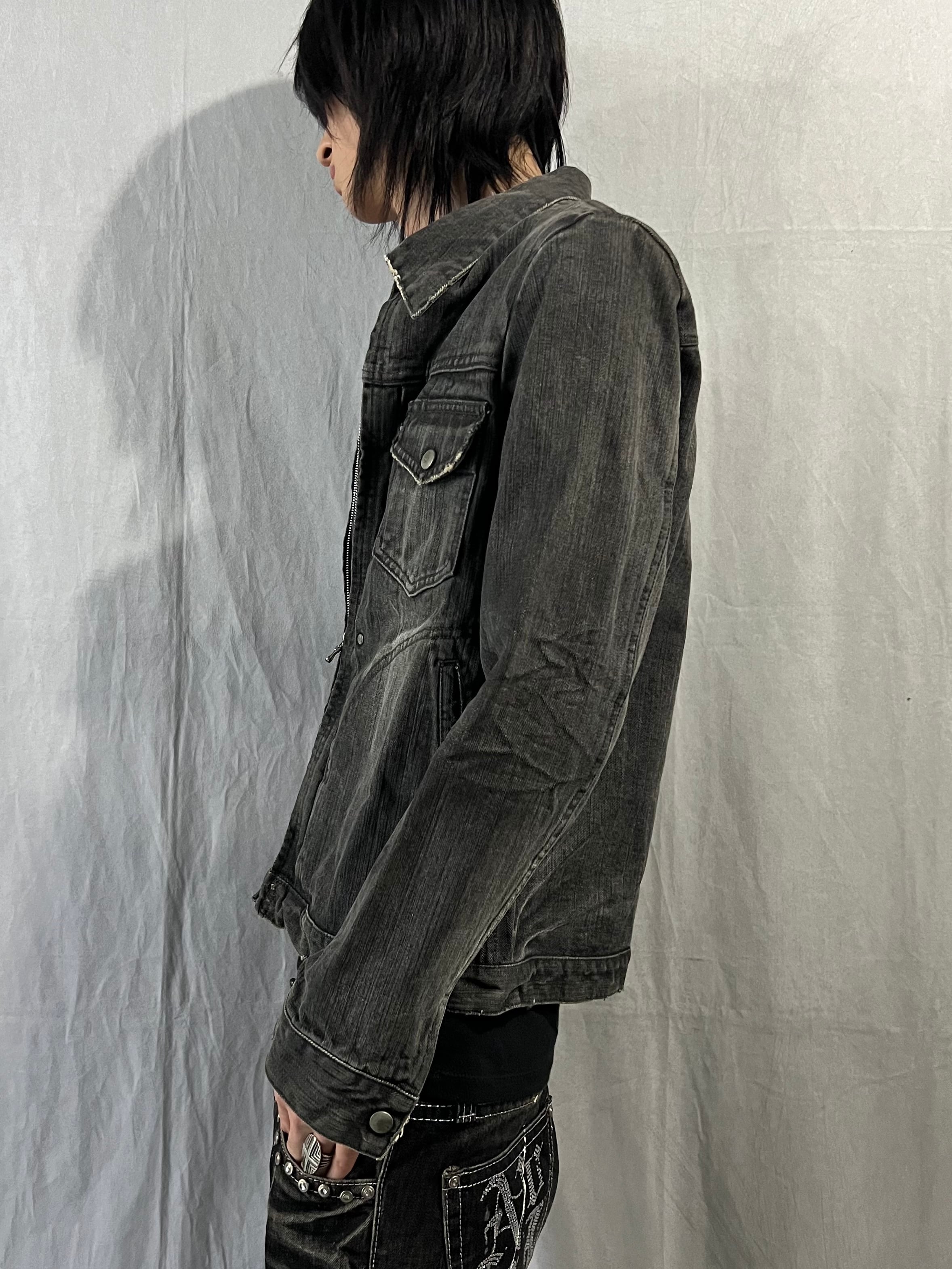 "Pledge" Damaged Zip Denim Jacket
