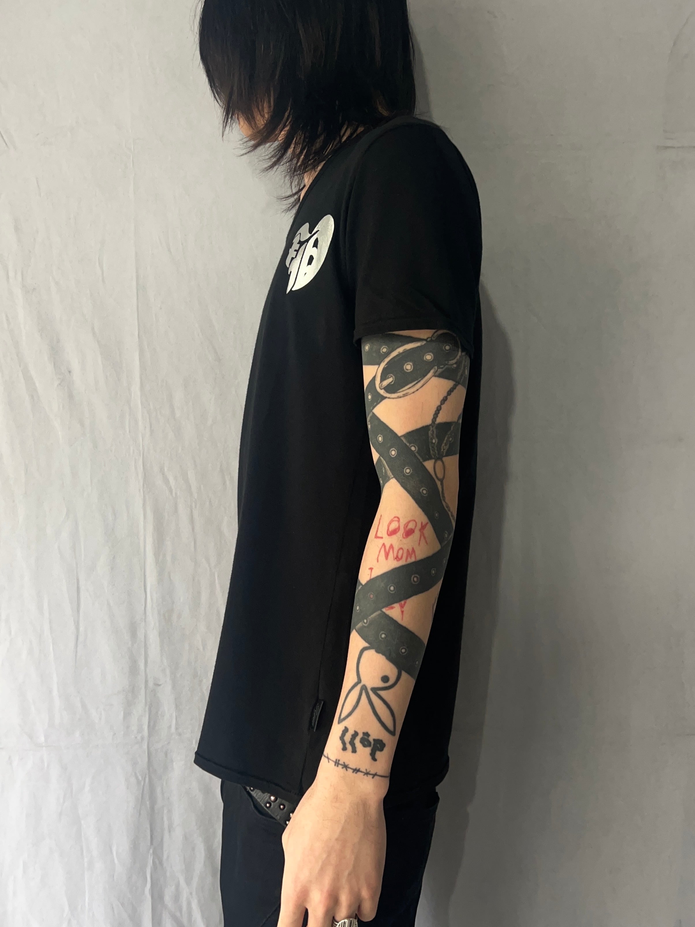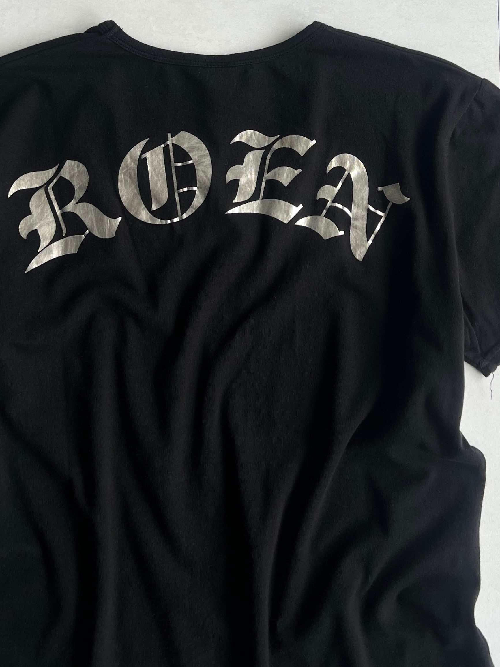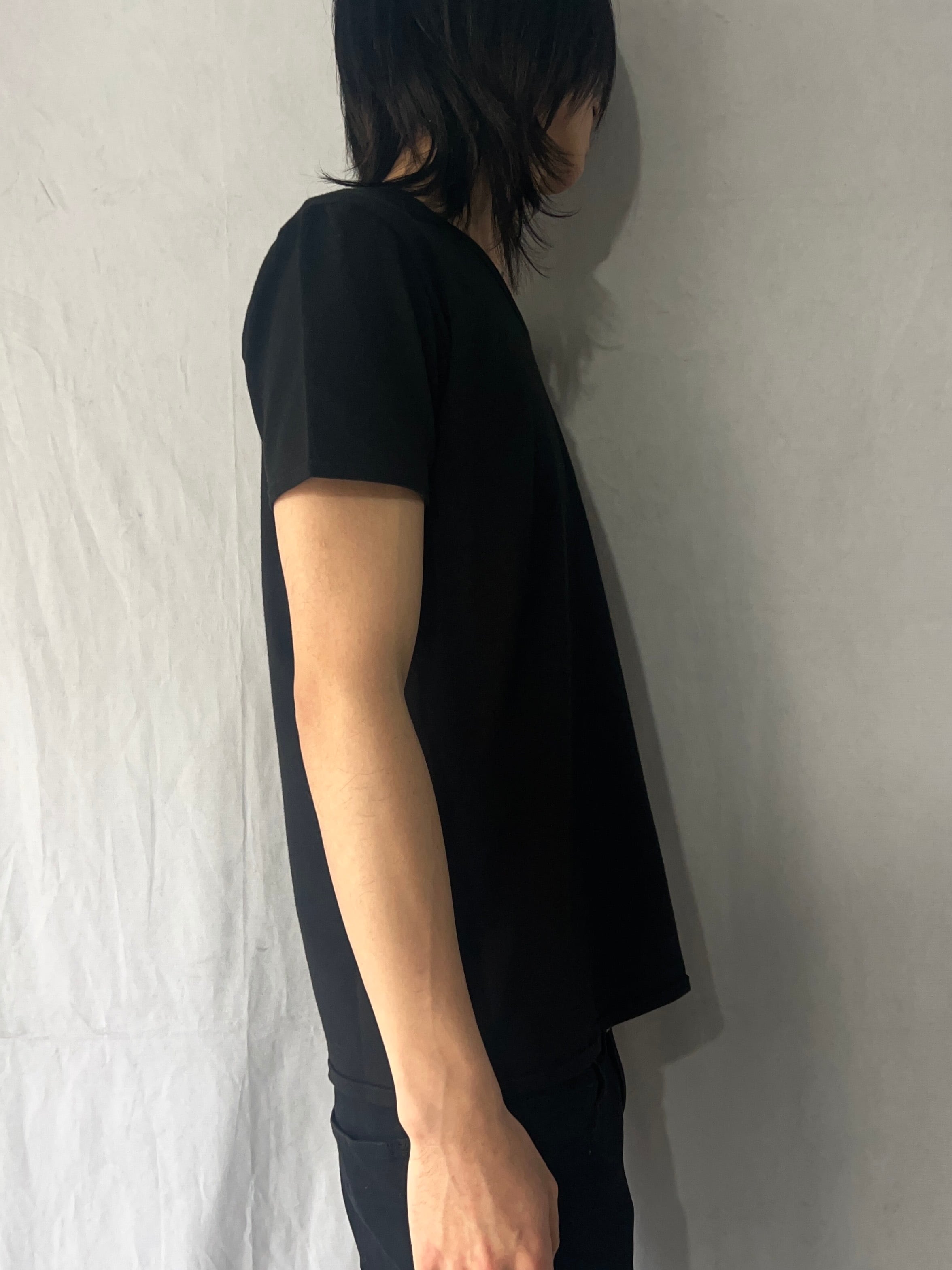 Size (サイズ)XL Width(身幅)48cm Sleeve Length(袖丈)17.5cm Shoulder Width(肩幅)42cm Length(着丈)61.5cm Quality(素材) cotton 55% rayon 40% polyurethan 5% 着用モデル Height(身長)178cm Body Weight(体重)60kg
