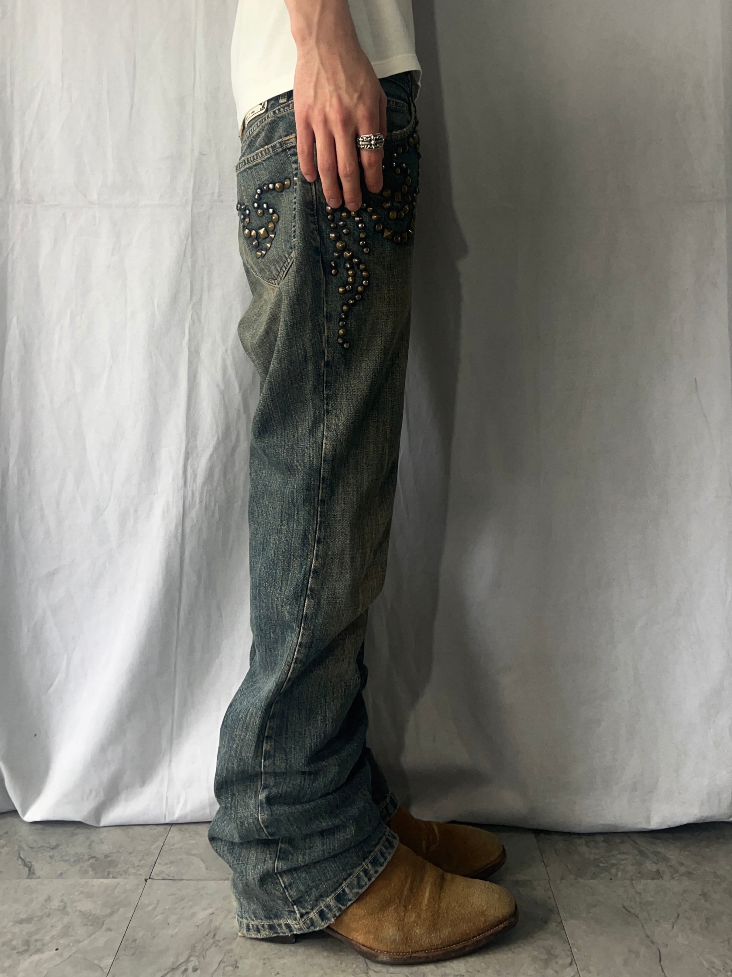 Size (サイズ)M Waist (ウエスト)81cm Rise (股上)21cm Inseam (股下)80cm Quality(素材) cotton 100% 着用モデル Height(身長)178cm Body Weight (体重)60kg