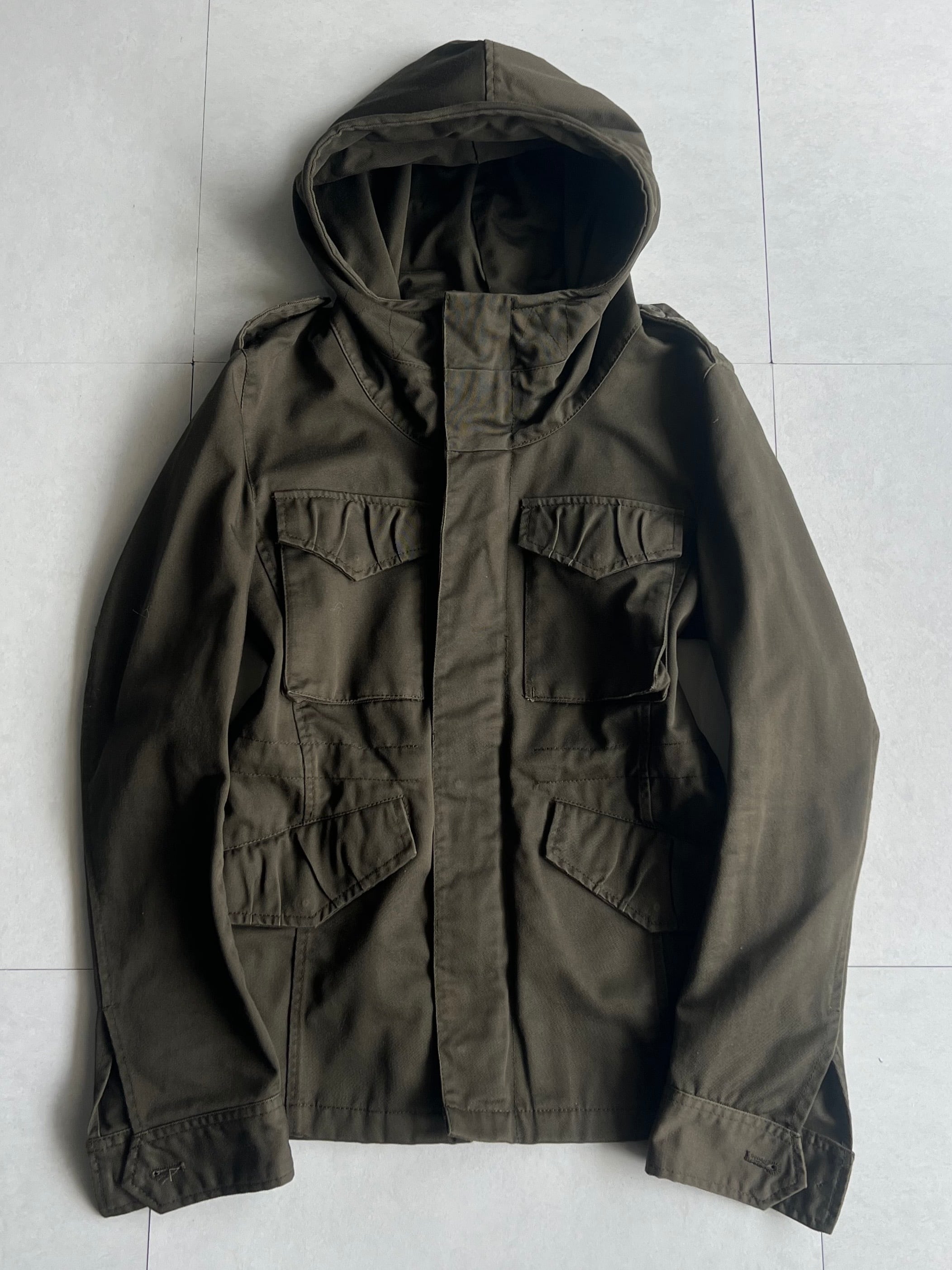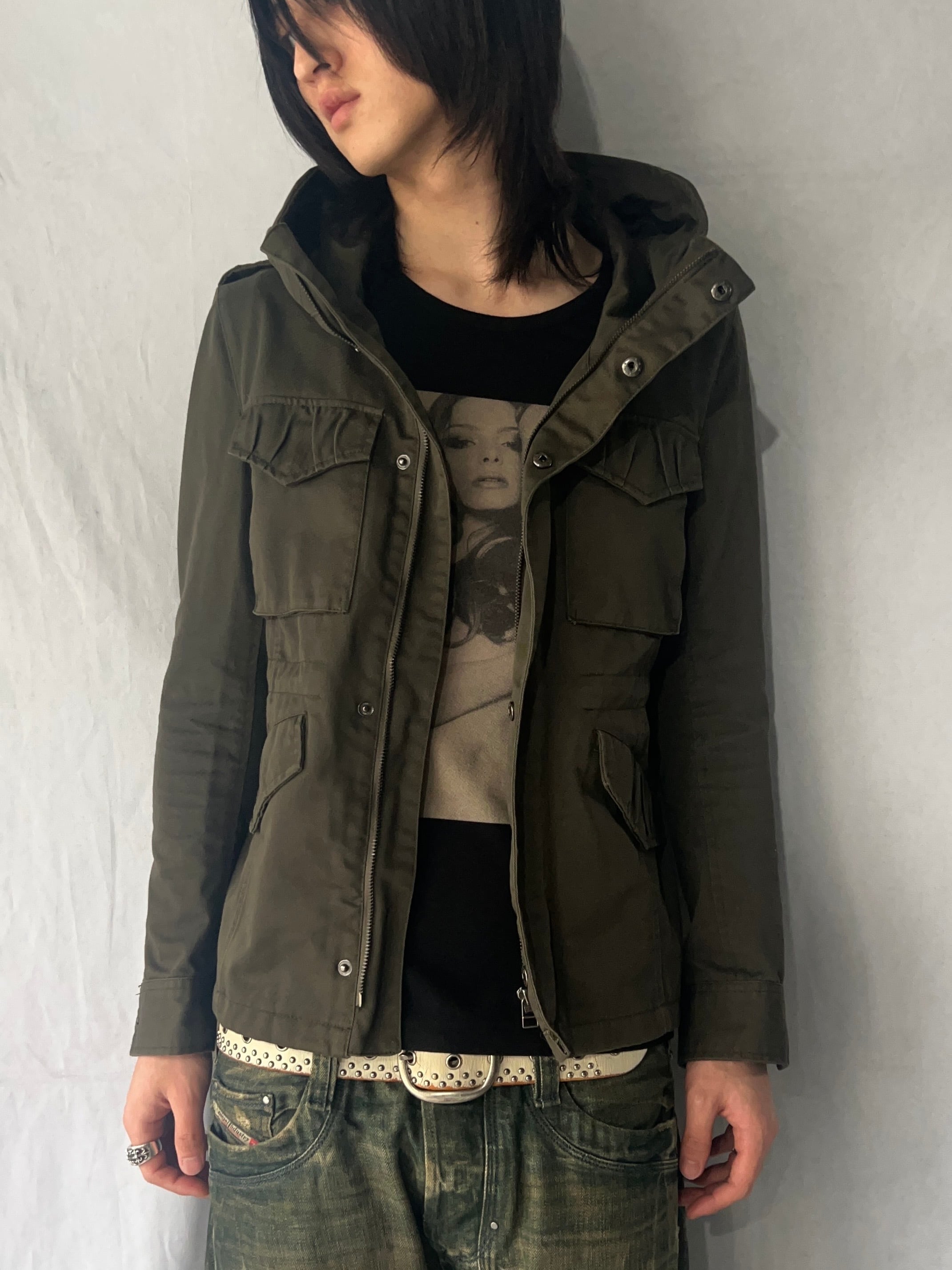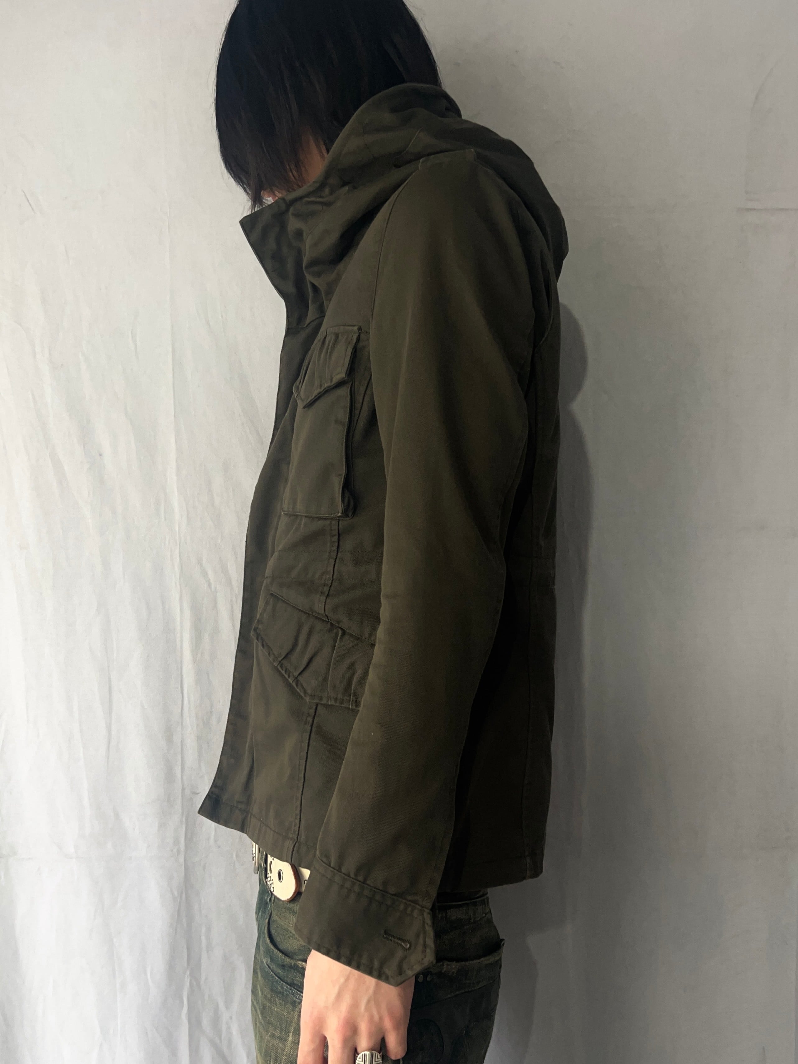 Size (サイズ)1 Width(身幅)51cm Sleeve Length(袖丈)60cm Shoulder Width(肩幅)42cm Length(着丈)61cm Quality(素材) polyester 65% cotton 35% 着用モデル Height(身長)178cm Body Weight(体重)60kg