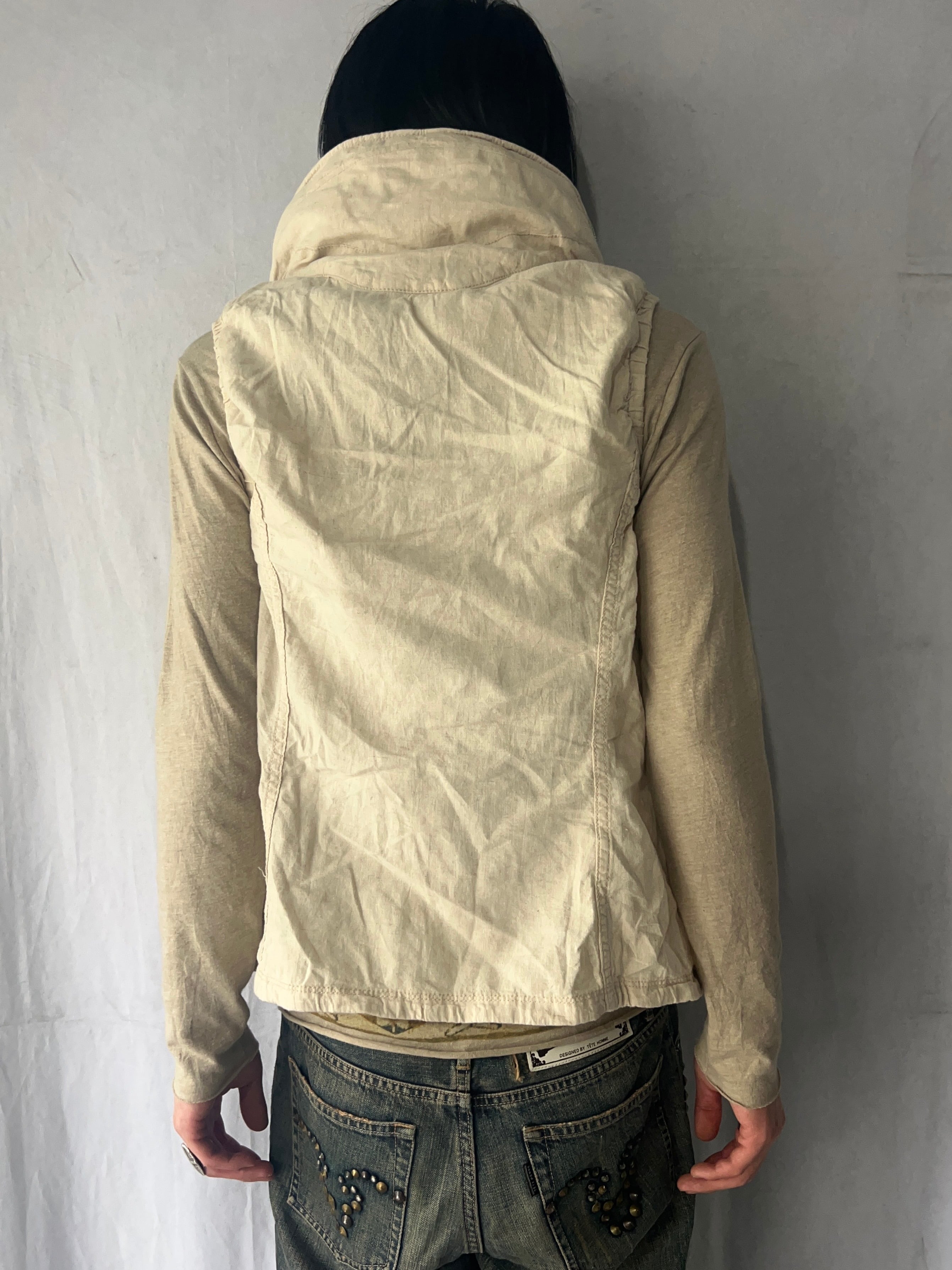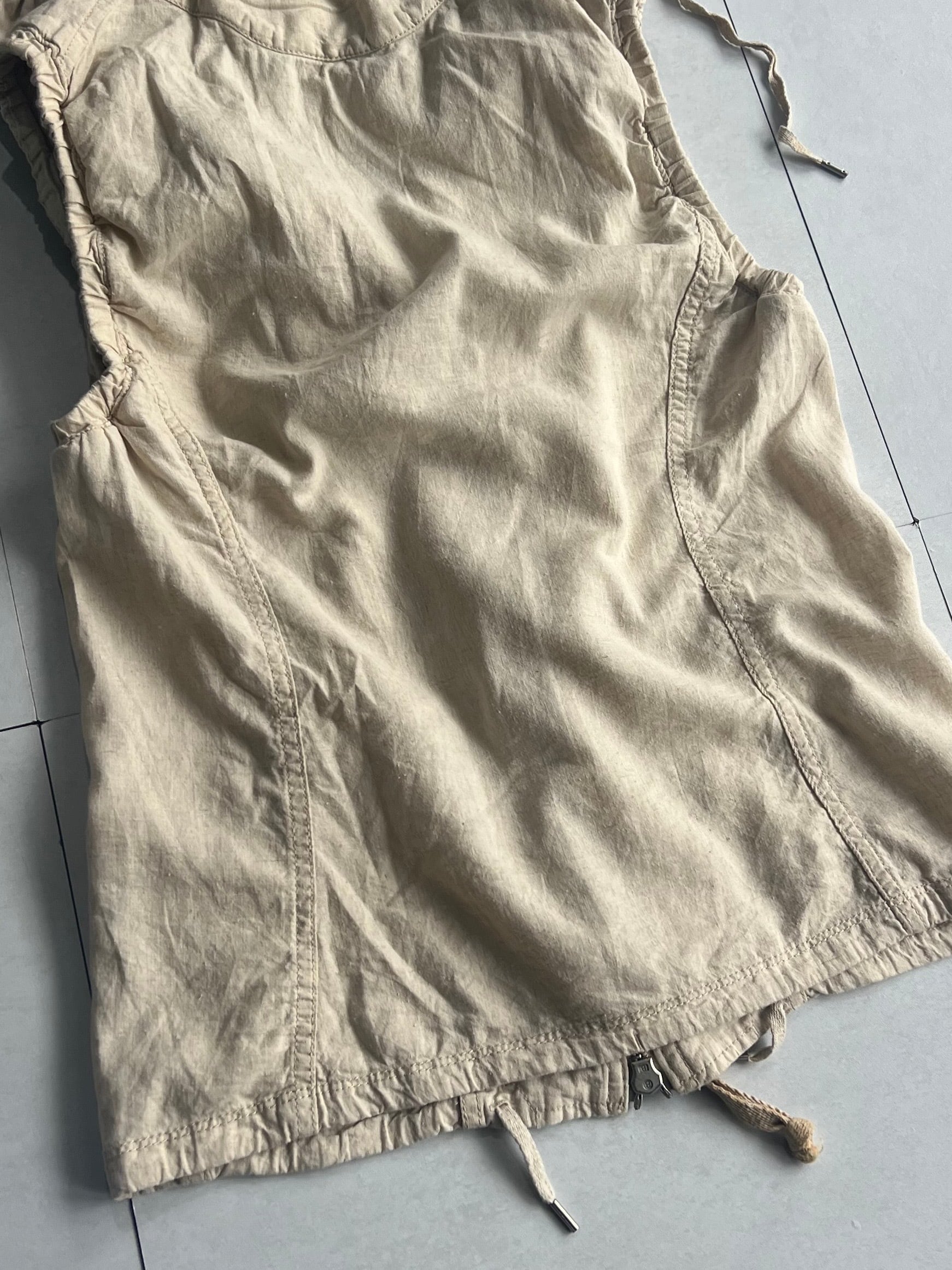 Size (サイズ)S Width(身幅)44cm Shoulder Width(肩幅)38cm Length(着丈)60cm Quality(素材) hemp 60% cotton 40% 着用モデル Height(身長)178cm Body Weight(体重)60kg